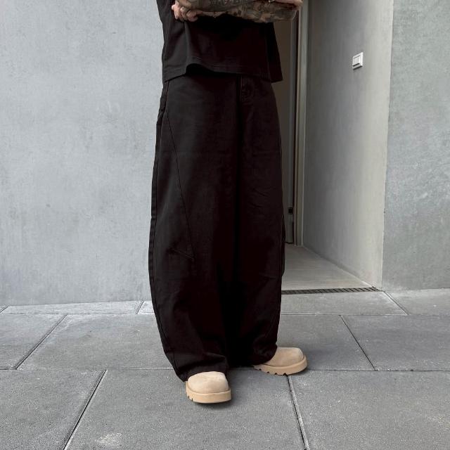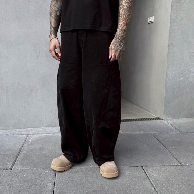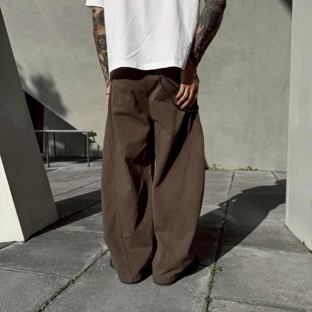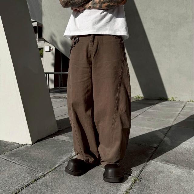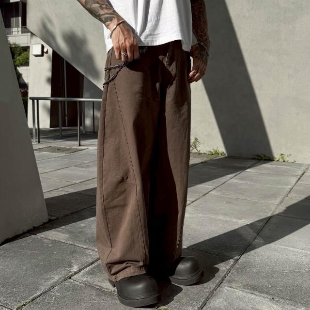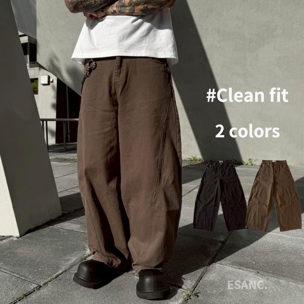衣衫倉庫 美式 Clean fit 彎刀褲 2色 落地褲 壓線 寬褲 闊腿 長褲男