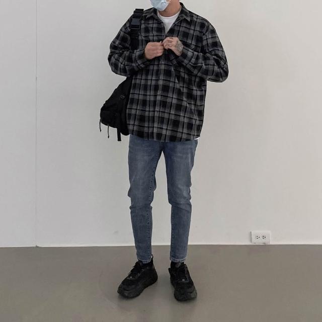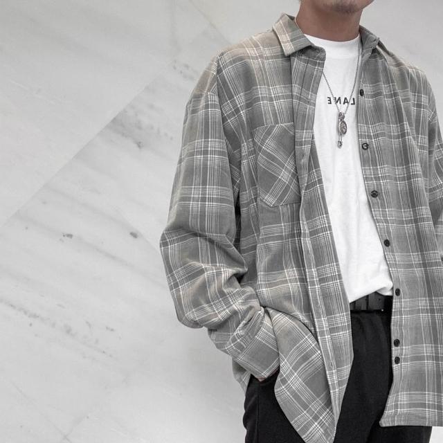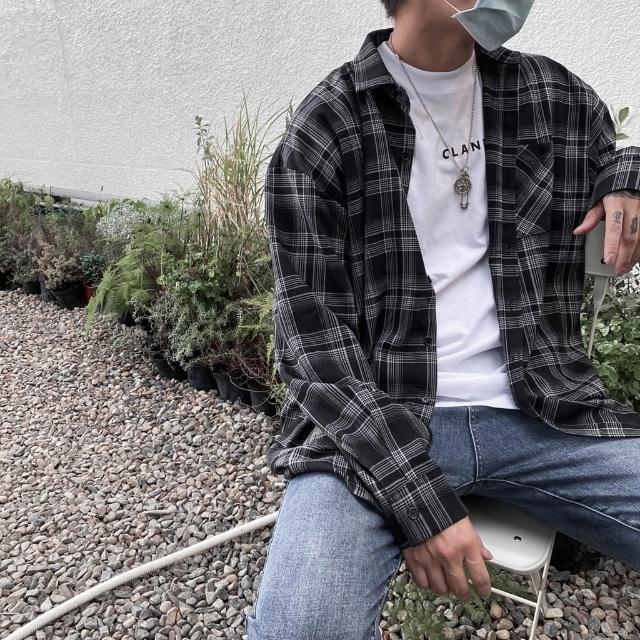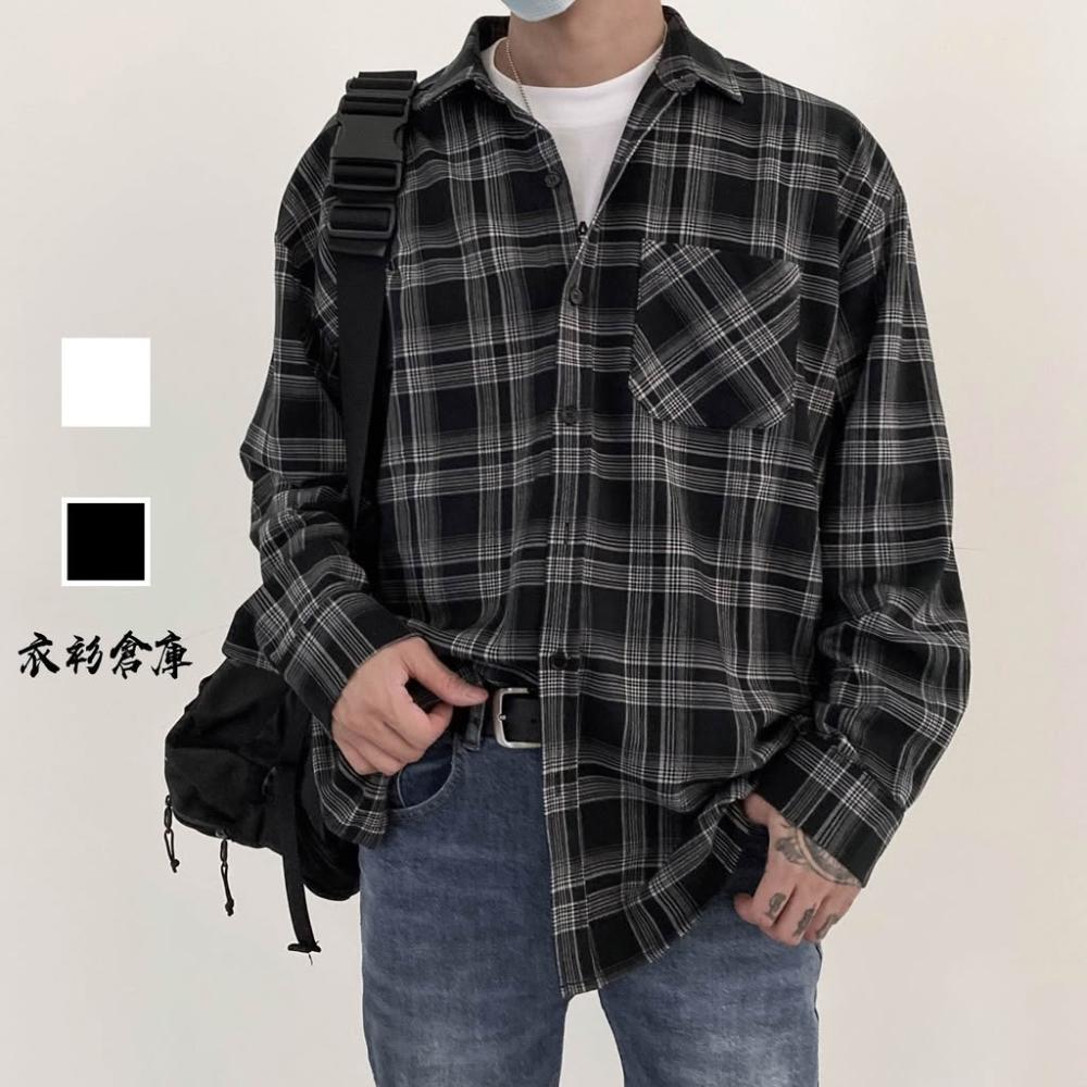 衣衫倉庫 韓國 寬鬆 格紋襯衫 男生外套 男生襯衫 長袖襯衫