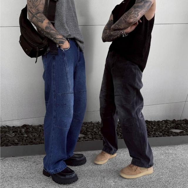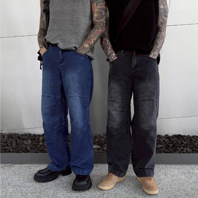衣衫倉庫 BAGGYJEANS 街頭 重磅 2色 水洗 寬鬆 貓鬚 牛仔長褲
