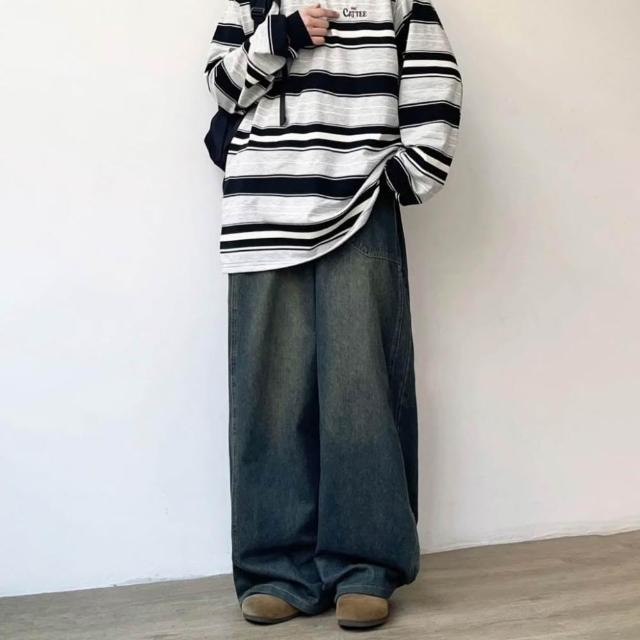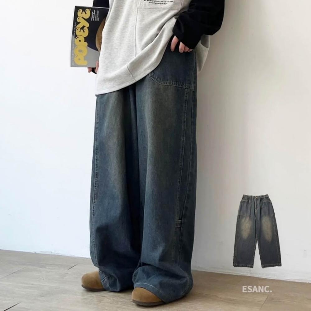 衣衫倉庫 韓國 牛仔褲 clean fit 水洗牛仔 畫家風 牛仔長褲 寬鬆 長褲 原色牛仔褲