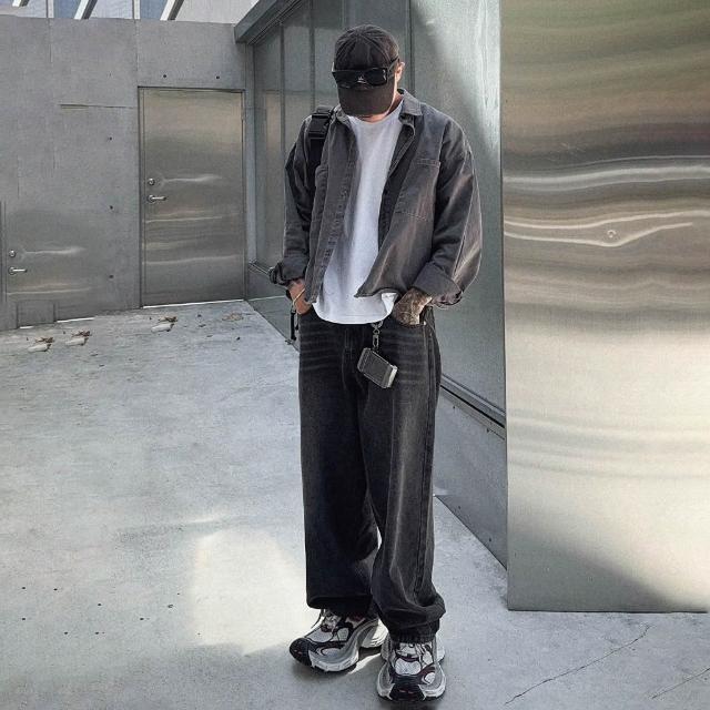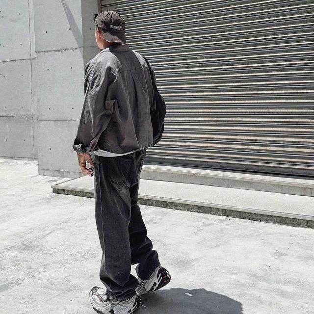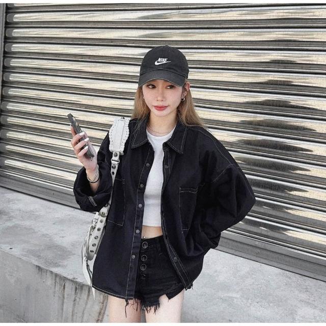 衣衫倉庫 韓國 襯衫 2色 反車線 水洗 仿舊 寬版 素面 長袖襯衫 短版 男女