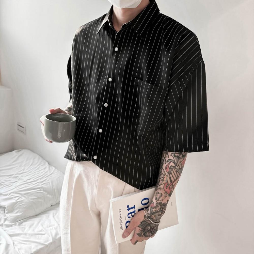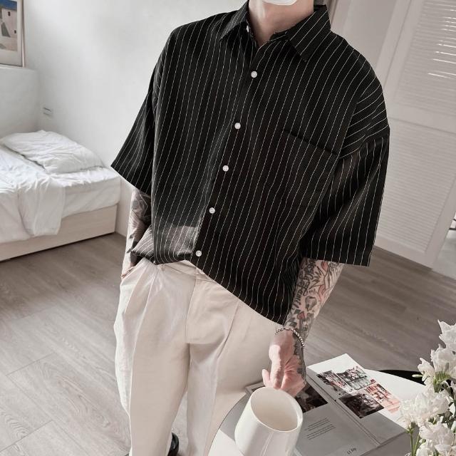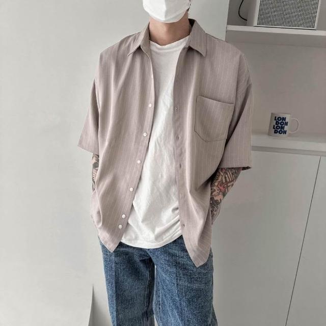 衣衫倉庫 韓國 襯衫 直條紋 抗皺 短袖襯衫 直條襯衫 滑面襯衫 高質感 男生襯衫 襯衫男