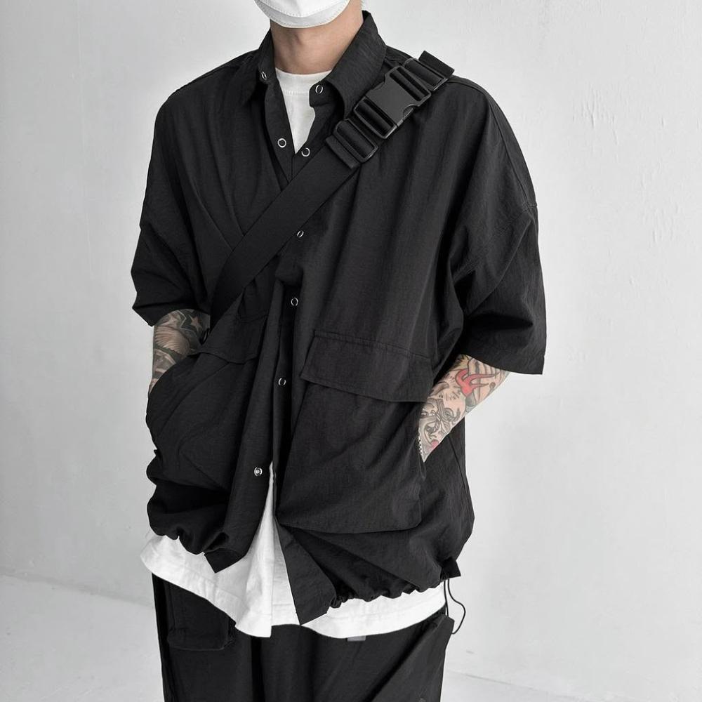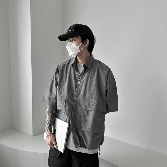 衣衫倉庫 韓國 工裝 襯衫 尼龍 大口袋 機能 口袋工裝襯衫 短袖襯衫 工裝短袖 襯衫 軍裝 襯衫