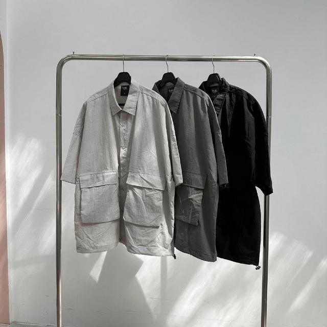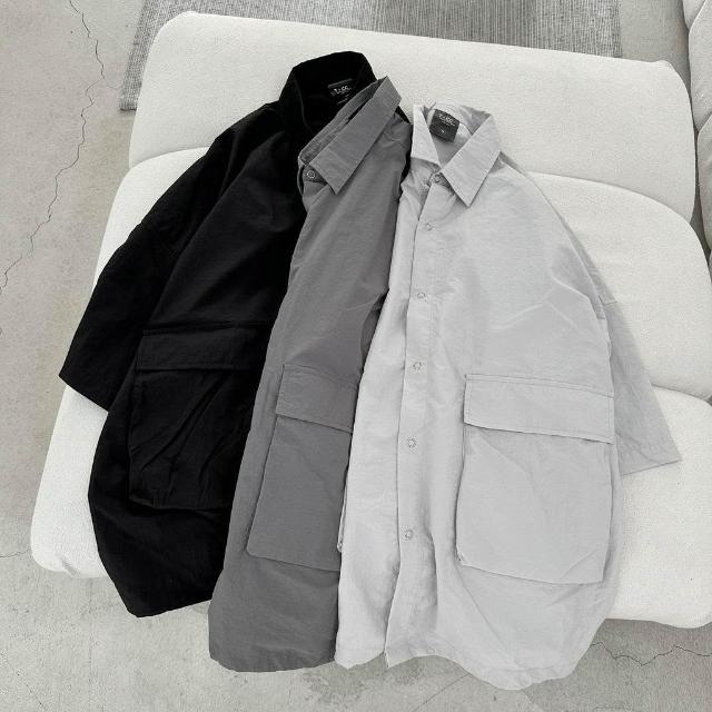 衣衫倉庫 韓國 工裝 襯衫 尼龍 大口袋 機能 口袋工裝襯衫 短袖襯衫 工裝短袖 襯衫 軍裝 襯衫