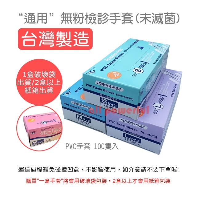 通用通用無粉檢診手套 (未滅菌) 通用PVC手套 台灣製 (100入/盒) 手套
