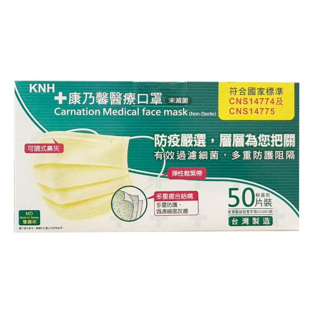 康乃馨KNH 康乃馨口罩 (未滅菌) 台灣製造 雙鋼印 50片/盒【粉黃色】178mm X 95mm