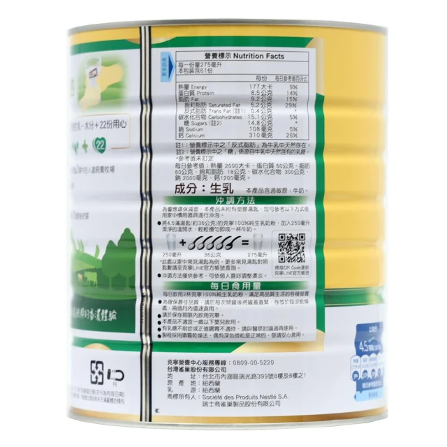 KLIM 克寧(克寧)100%純生乳奶粉2.2公斤x1罐 效期2027年3月
