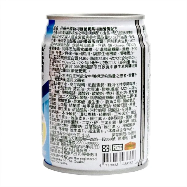 桂格完膳新均護營養素均衡營養配方(無糖不甜)250mlx24罐+2罐/箱