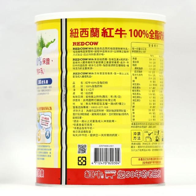 RED COW 紅牛(紅牛)100%全脂奶粉2.1公斤x2罐