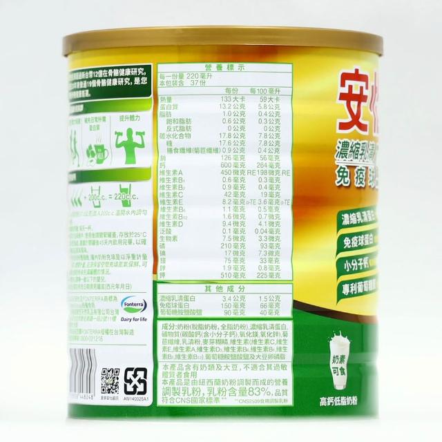 Anlene 安怡(安怡)濃縮乳清蛋白免疫球蛋白高鈣低脂奶粉1400gx2罐效期2027年2月