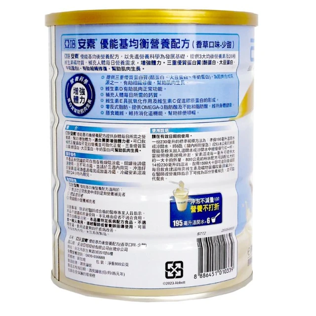 (亞培)安素優能基均衡營養配方(香草少甜口味)800gx1罐