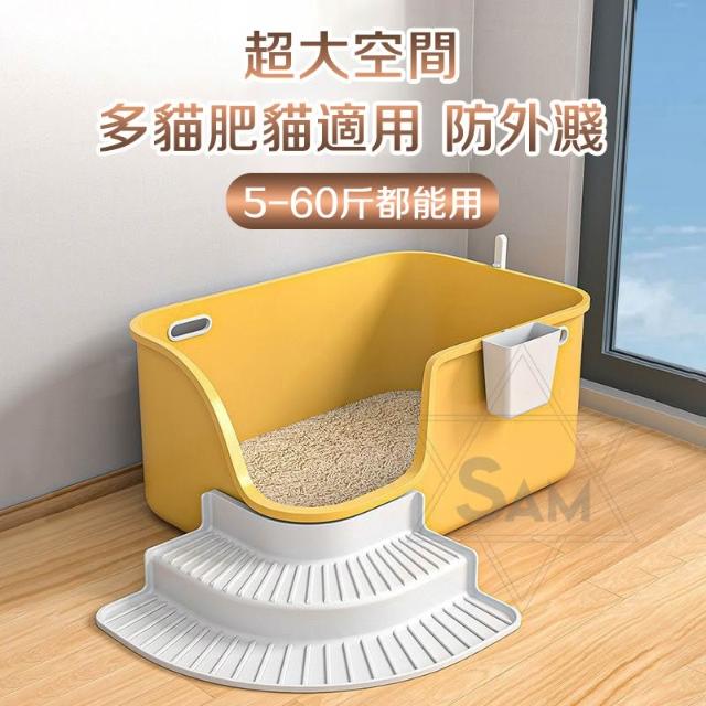 🔥台灣現貨+免運 超大貓砂盆 65cm 特大貓砂盆 大型貓砂盆 高貓砂盆 開放式貓砂盆 防濺貓砂盆 肥貓可用 帶階梯