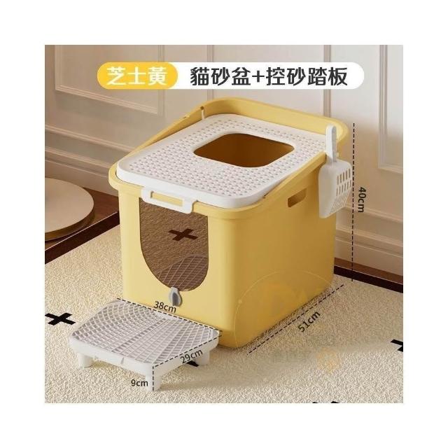 新品 頂入式貓砂盆 雙門貓砂盆 封閉貓砂盆 除臭 桶式貓砂盆 一體貓砂盆 加大貓砂盆 50cm 簡約貓砂盆黃色