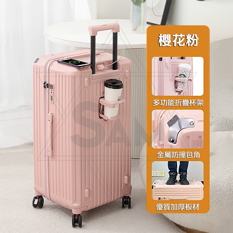 🔥五輪行李箱 減震煞車輪丨杯架丨充電口 旅行箱 胖胖箱5輪 大容量行李箱 行李箱26吋 24吋行李箱 28吋 3:7開