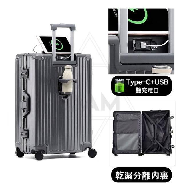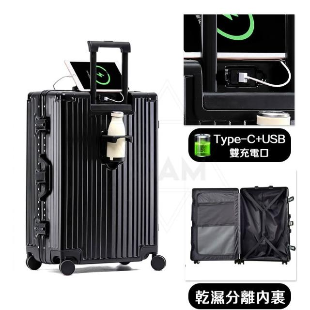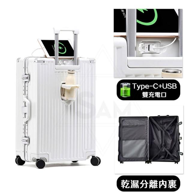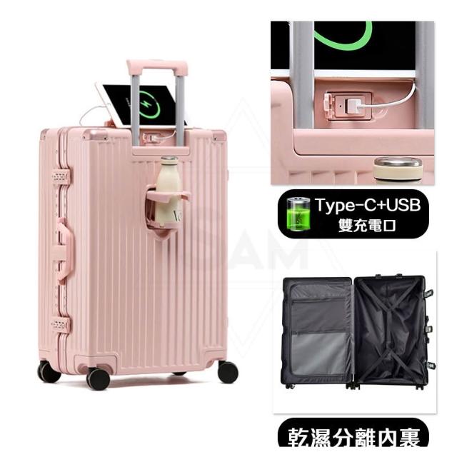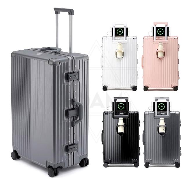 航空級鋁框箱 輕量行李箱鋁框行李箱 鋁框登機箱 20吋 29吋行李箱 旅行箱 拉桿箱 USB充電口丨杯架丨掛鉤
