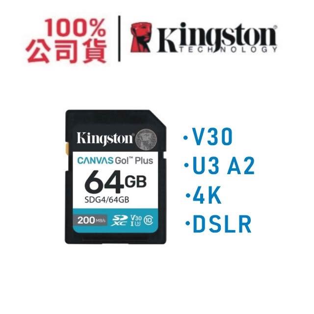 Kingston 金士頓金士頓 64G SDG4 Canvas Go Plus SDXC 大卡 SDG4/64GB 記憶卡 適用 4K 相機