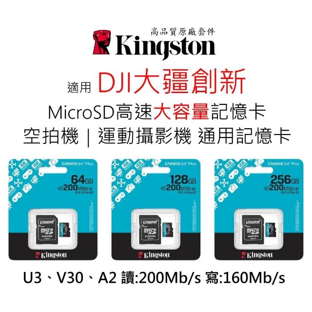 Kingston 金士頓適用 DJI大疆創新 空拍機 運動攝影機 64G 128G 256G U3 A2 V30 MicroSD高速記憶卡