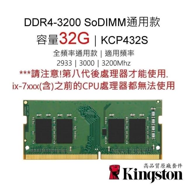 Kingston 金士頓金士頓記憶體 適用 MSI微星 DDR4 4G 8G 16G 32G 2933 3000 3200 NB SoDIMM