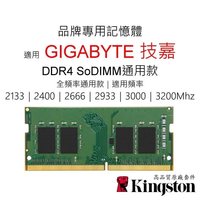 Kingston 金士頓金士頓記憶體 適用 GIGABYTE 技嘉 DDR4 4G 8G 16G 32G 2933 3000 3200 NB