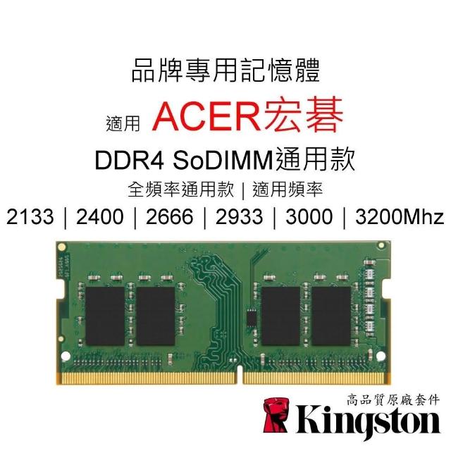 Kingston 金士頓金士頓記憶體 適用 ACER宏碁 DDR4 4G 8G 16G 32G 2933 3000 3200 NB SoDIMM