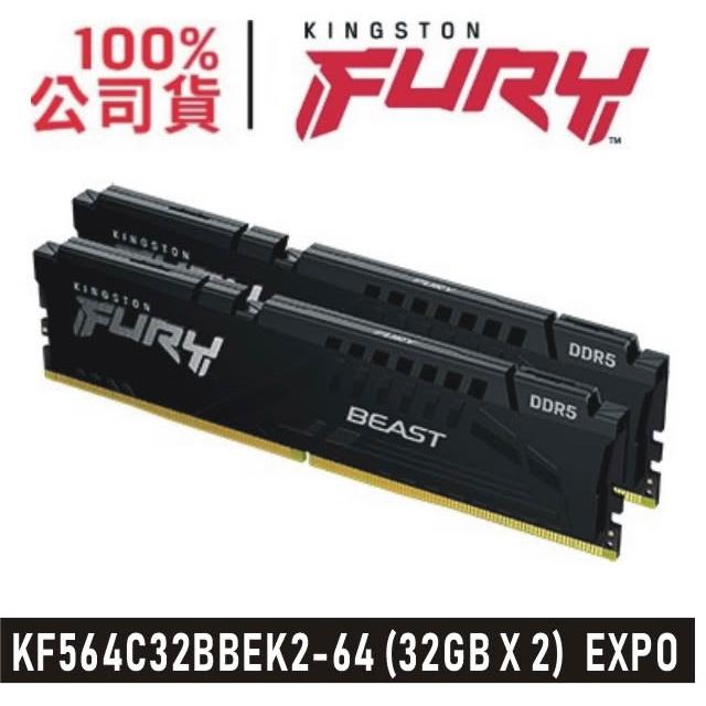 Kingston 金士頓 獸獵者 Fury Beast DDR5-6400 32G*2 桌上型超頻記憶體 黑 KF564C32BBEK2-64