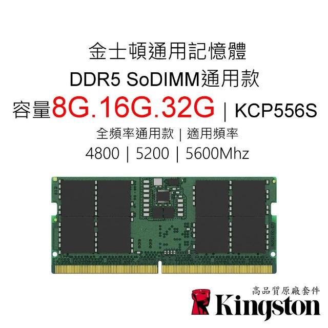 Kingston 金士頓金士頓RAM記憶體 DDR5 4800 5200 5600 8G 16G 32G SODIMM NB筆電 KCP556S
