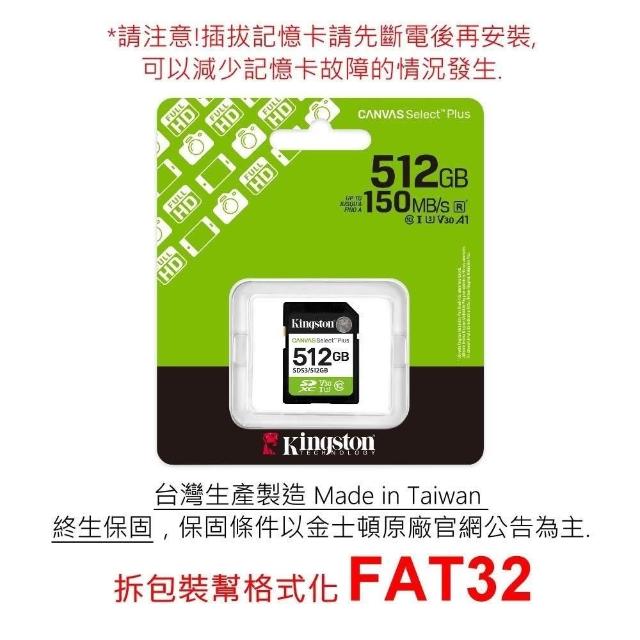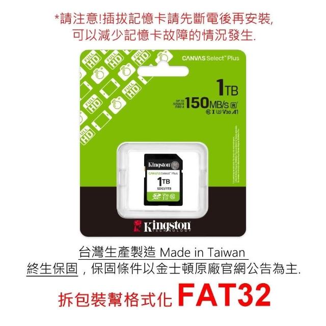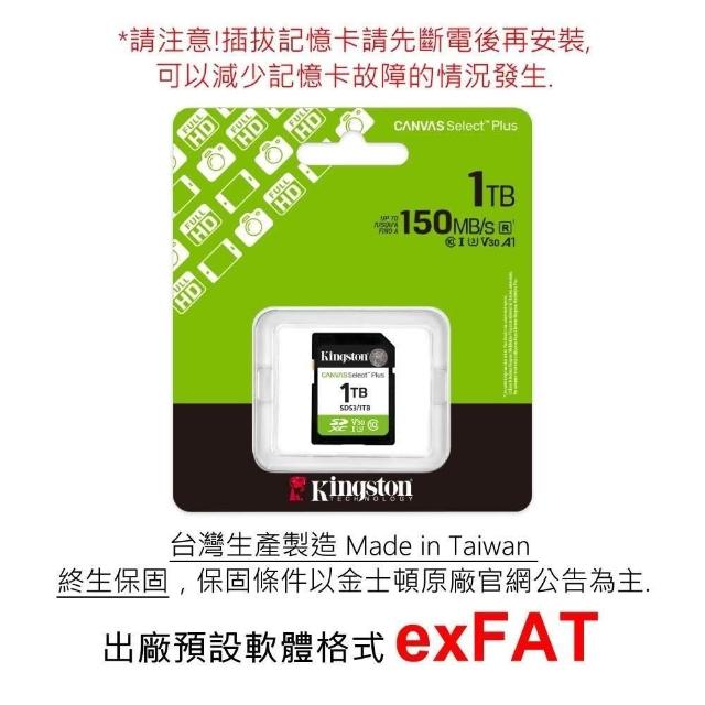 Kingston 金士頓金士頓記憶卡 SDS3/1TB 1T Canvas Select Plus SD C10 U3 V30 64G起