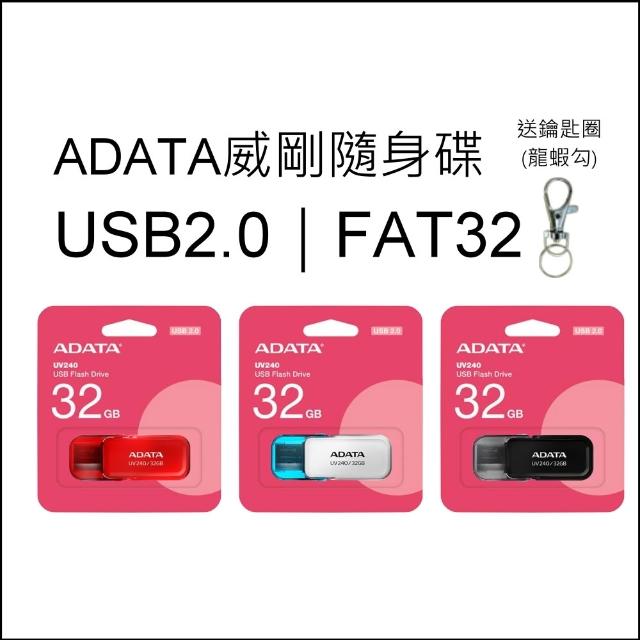 ADATA 威剛ADATA威剛 USB 2.0 32G 32GB 沉穩黑 純淨白 活力紅 FAT32隨身碟 行動碟 UV240