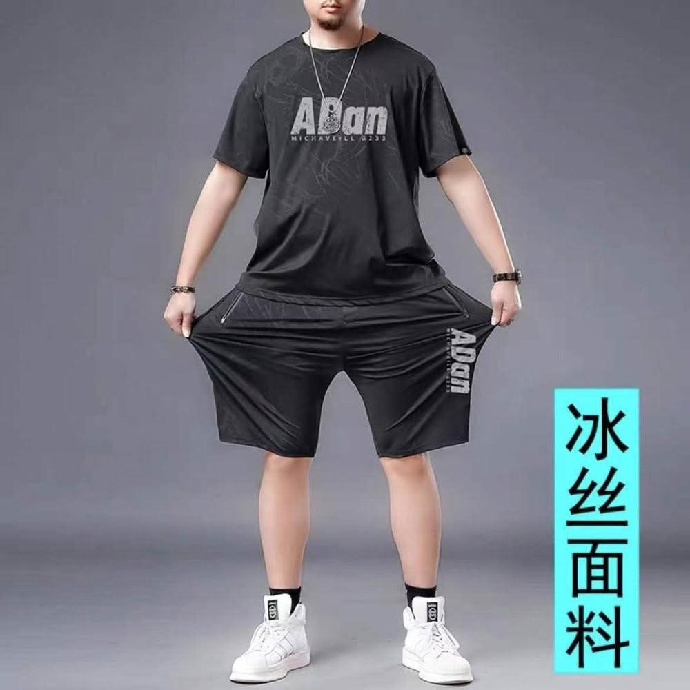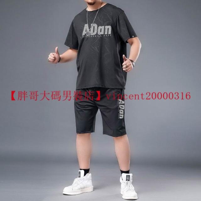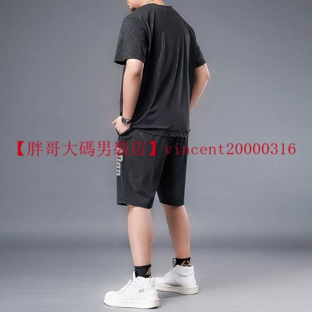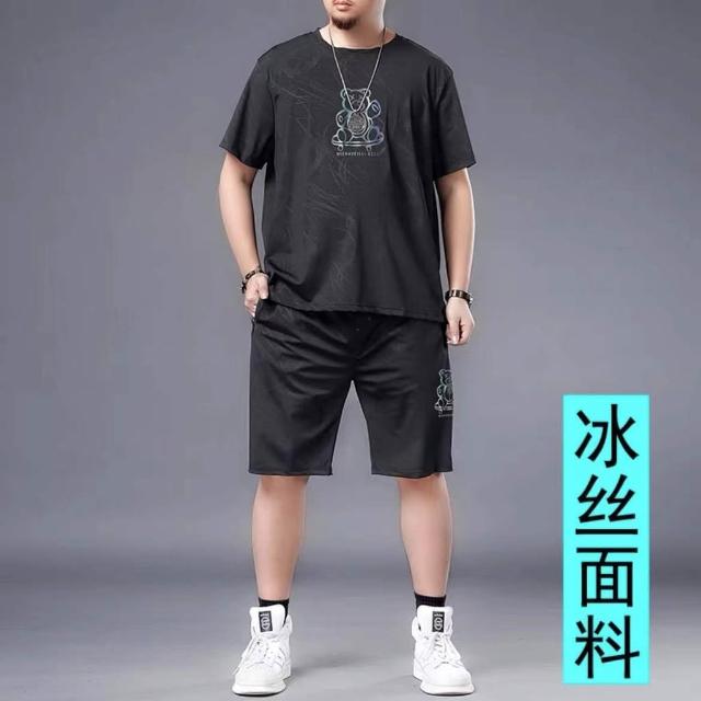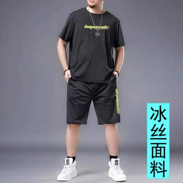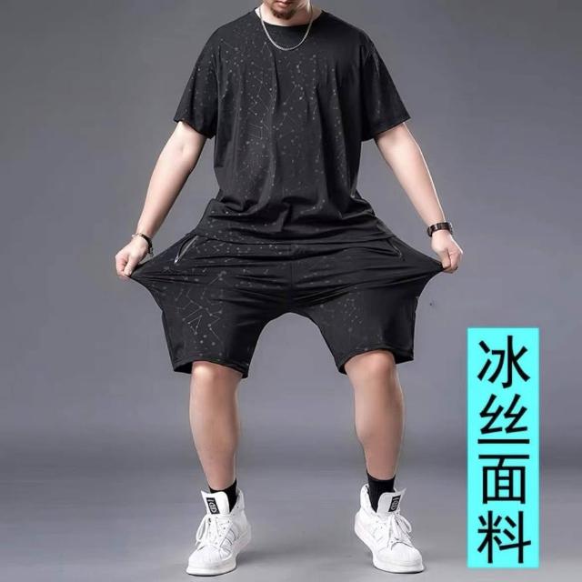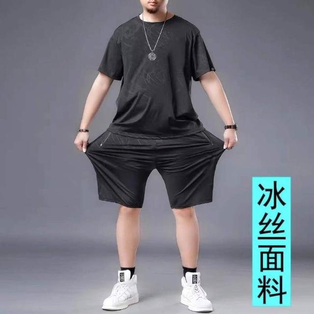 150公斤 大尺碼短袖套裝 8XL運動短褲 大尺碼短袖T恤大碼冰絲運動服套裝男夏季胖子加肥加大速幹短褲短袖T恤休閒男裝