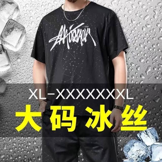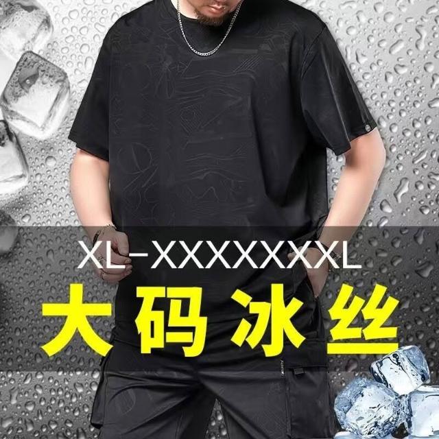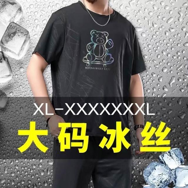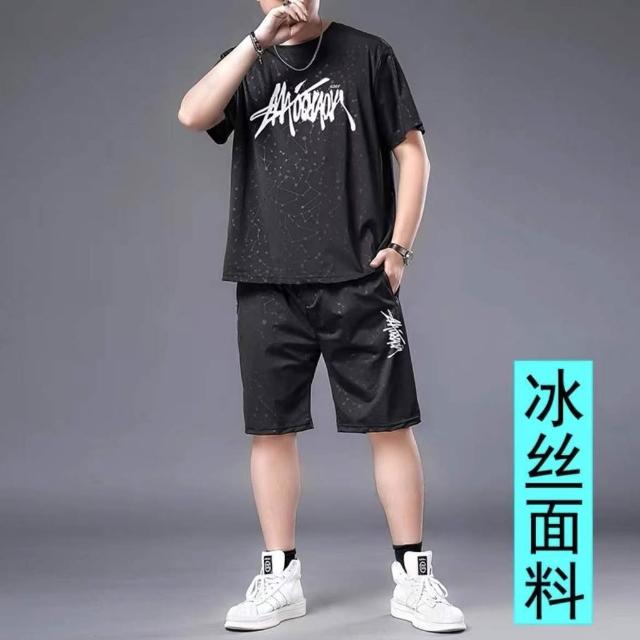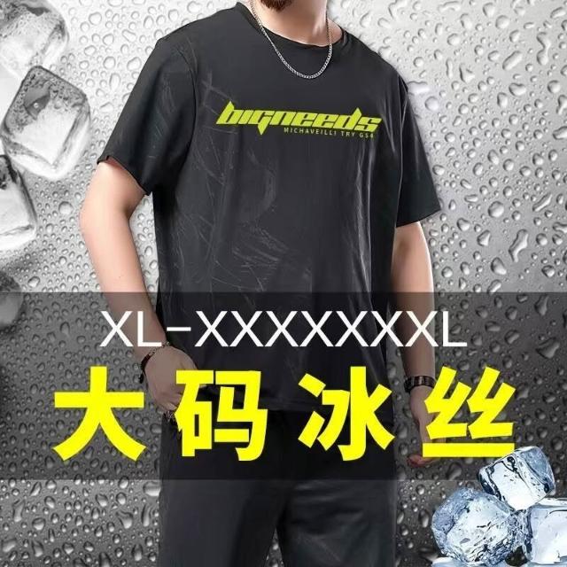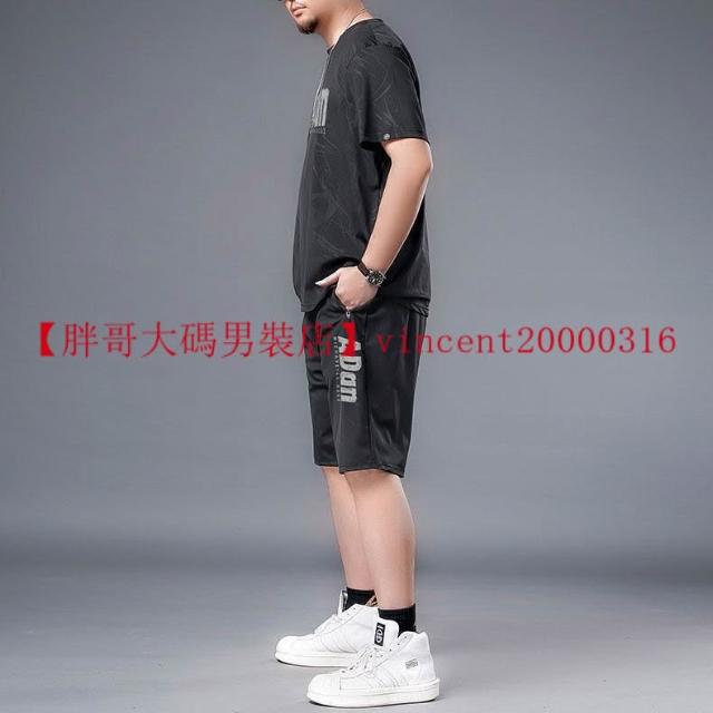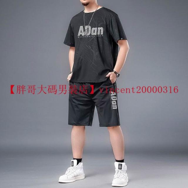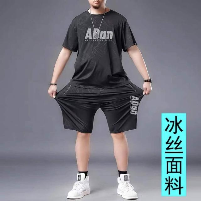 150公斤 大尺碼短袖套裝 8XL運動短褲 大尺碼短袖T恤大碼冰絲運動服套裝男夏季胖子加肥加大速幹短褲短袖T恤休閒男裝