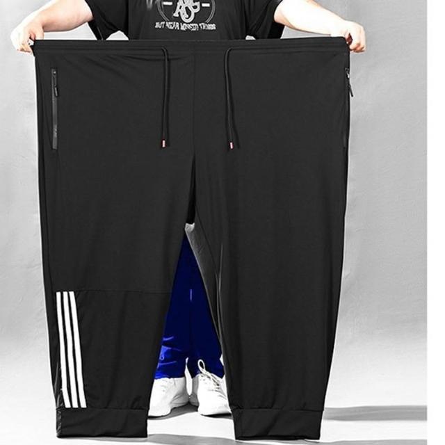230公斤/12XL 超大尺碼運動褲 大尺碼長褲子 大碼休閒長褲 夏季薄款男士加肥加大高彈寬鬆冰絲大碼運動休閒潮胖子