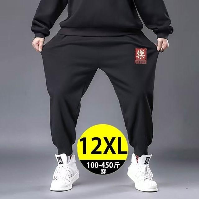 225公斤 11XL大尺碼男裝 肥佬束腳褲 歐美高彈力長褲 男士大碼束腳褲男運動褲胖子加肥加大休寬鬆閒褲潮流大碼褲子SJ