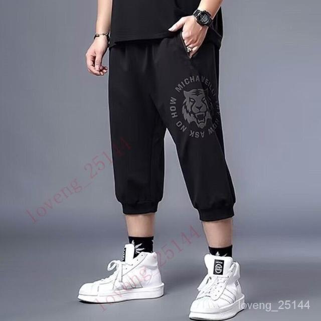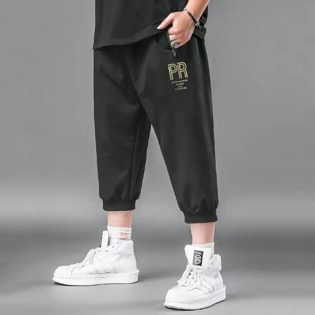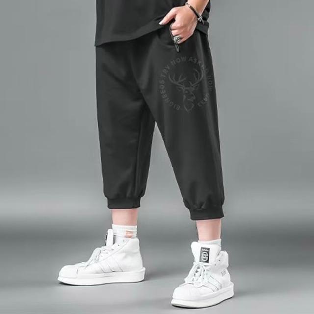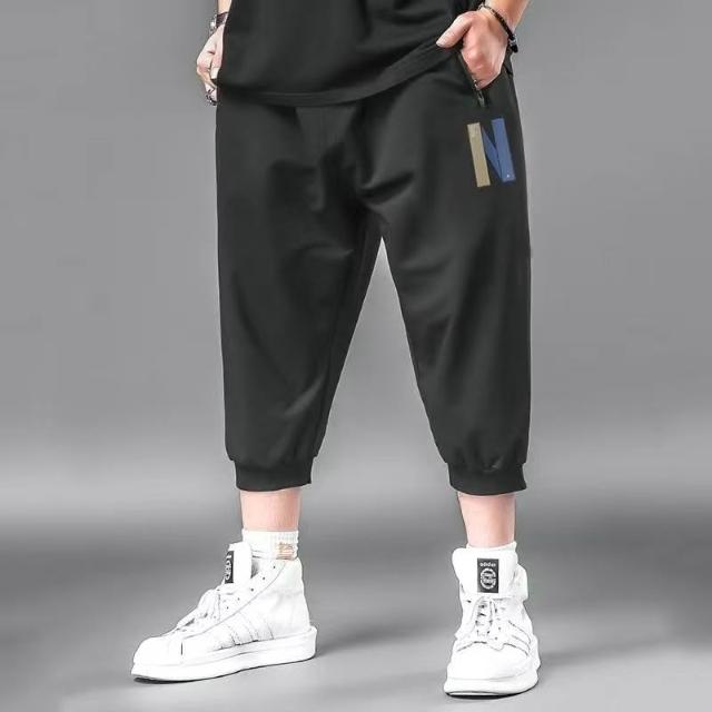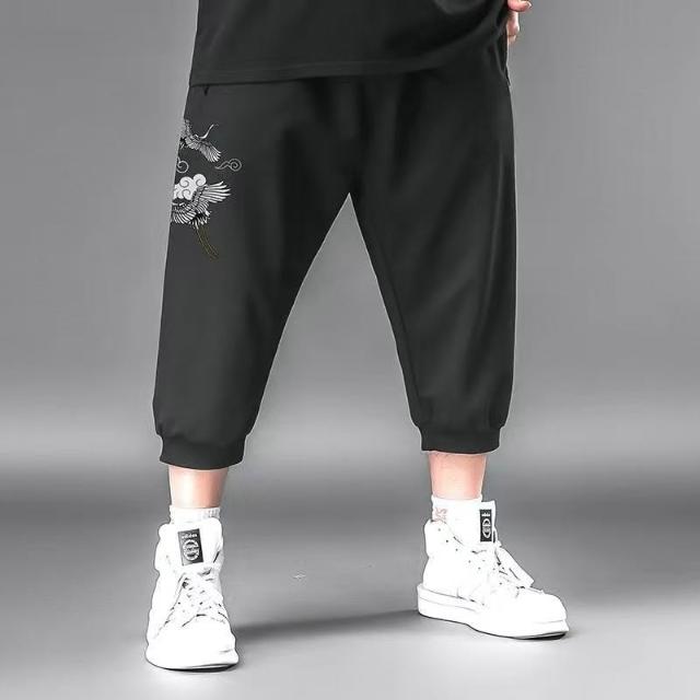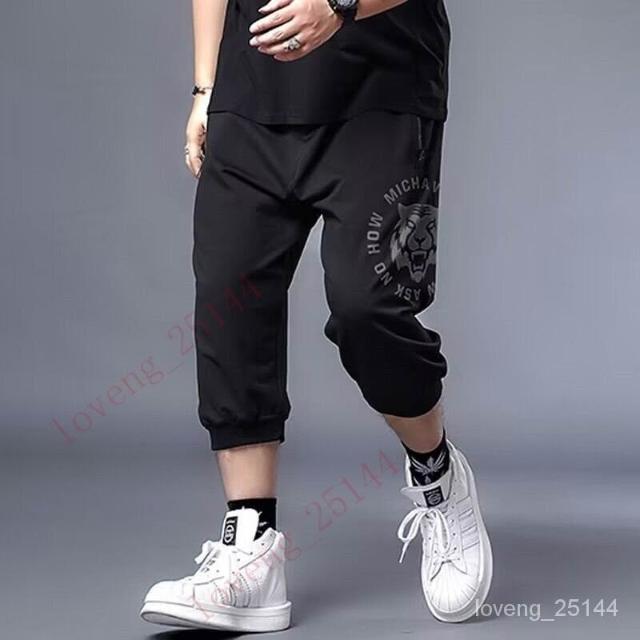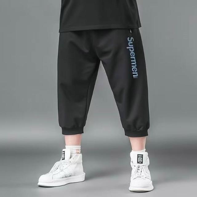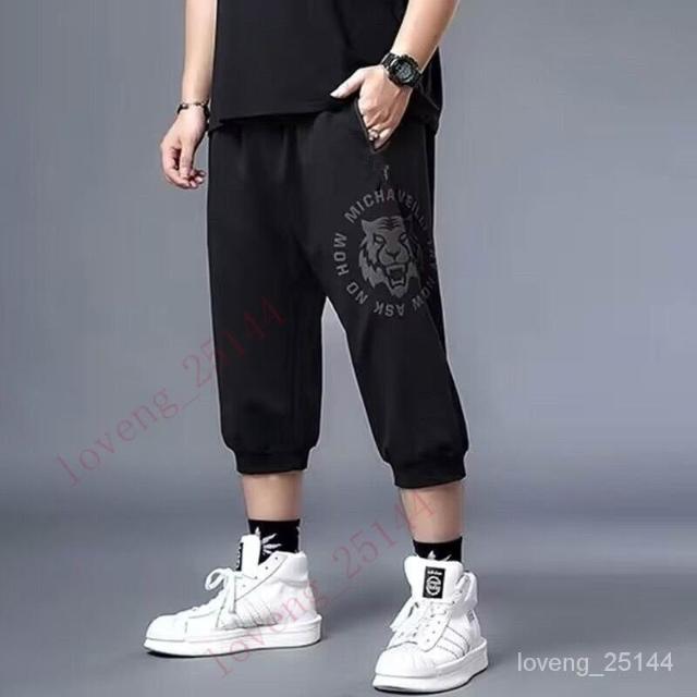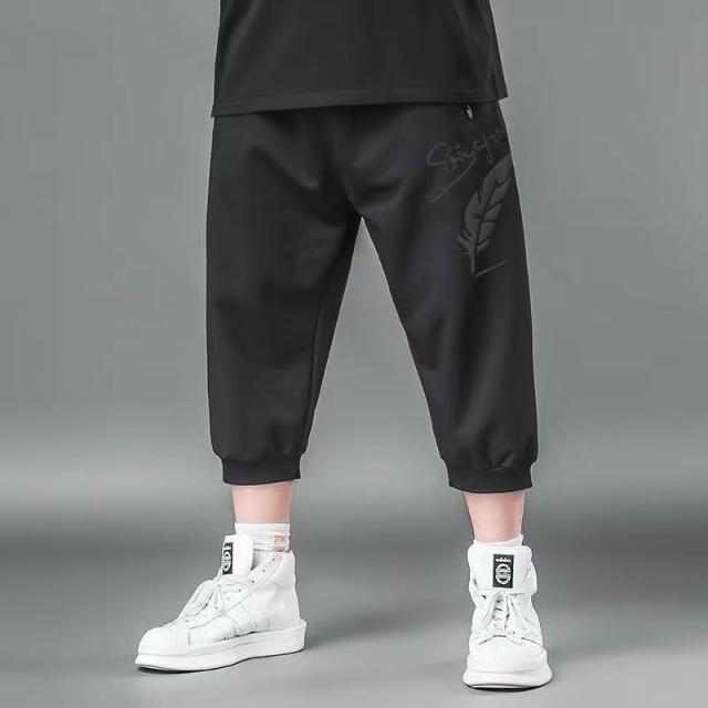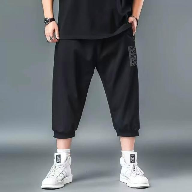140公斤 8XL大尺碼束腳褲男 胖子中彈力運動褲 七分褲男夏季胖子加肥加大碼男士短褲休閒運動寬鬆束腳潮男褲子