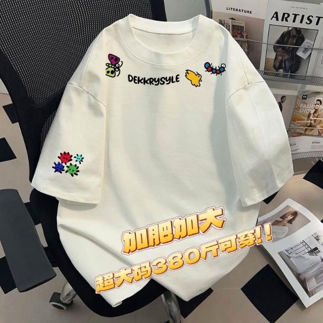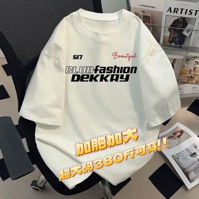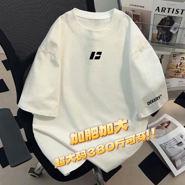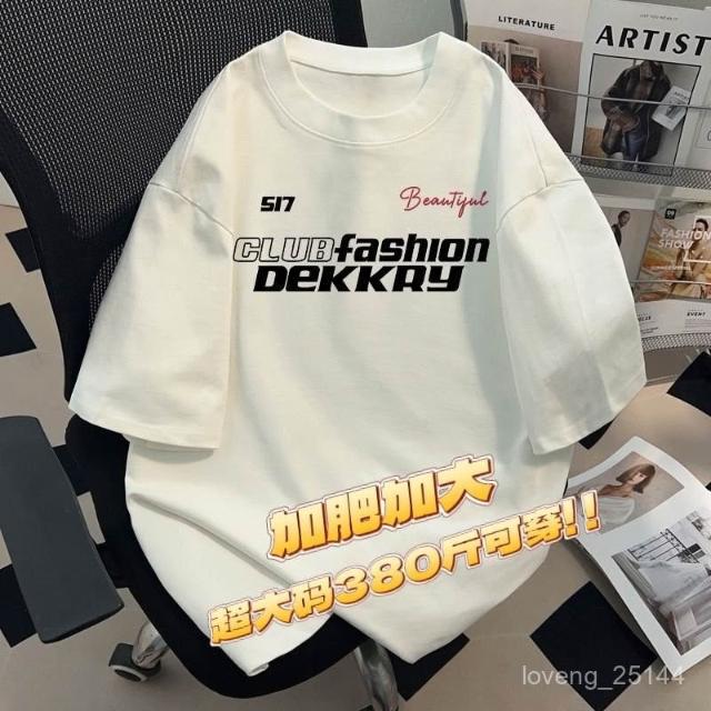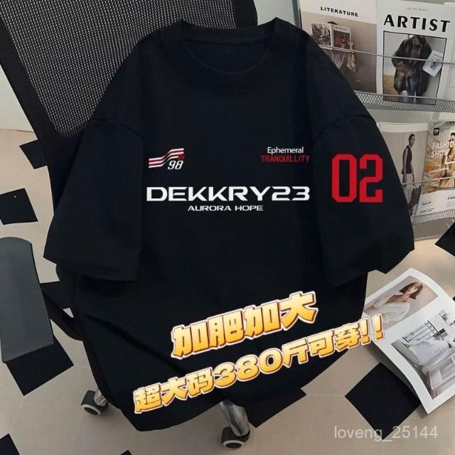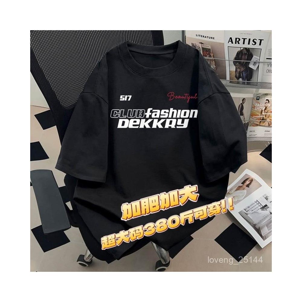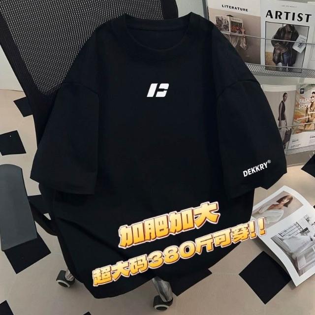190公斤 12XL大尺碼圓領字母印花T恤男透氣棉質 加肥加大碼380斤美式輕奢潮男黑色寬鬆男士短袖T恤夏季新款上衣服