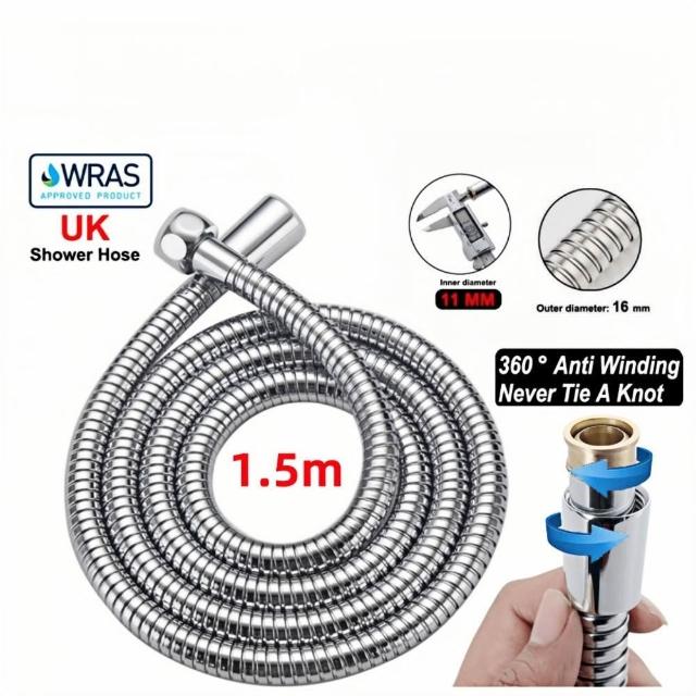 MIAO YING 淼瀅精品衛浴台製超大流量360°自旋電鍍軟管 出口歐.美多國市場專供 內孔11mm 不銹鋼蓮蓬頭軟管