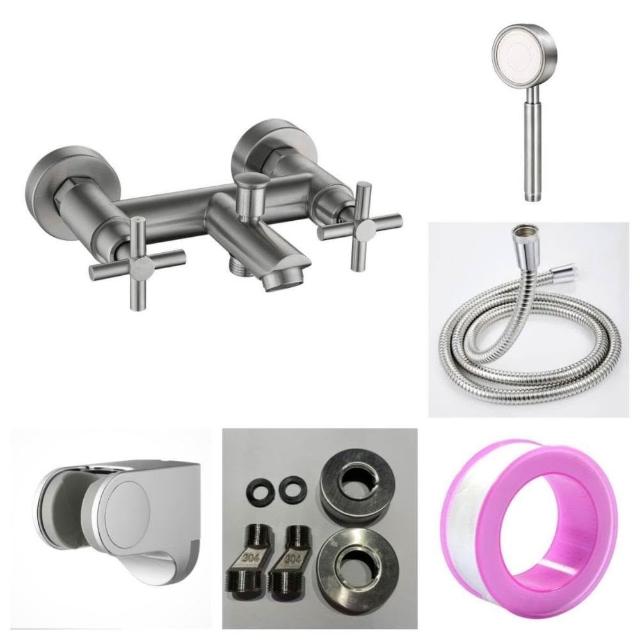 MIAO YING 淼瀅精品衛浴🇹🇼正304不銹鋼雙開關水龍頭 浴室水龍頭 浴缸水龍頭 沐浴龍頭 不銹鋼浴缸浴室洗澡沐浴蓮蓬頭
