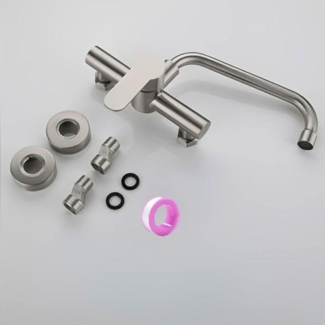 MIAO YING 淼瀅精品衛浴304不銹鋼壁式水龍頭 可裝濾水器 冷熱混合水龍頭 無鉛水龍頭 超質感拉絲面水龍頭 水槽龍頭