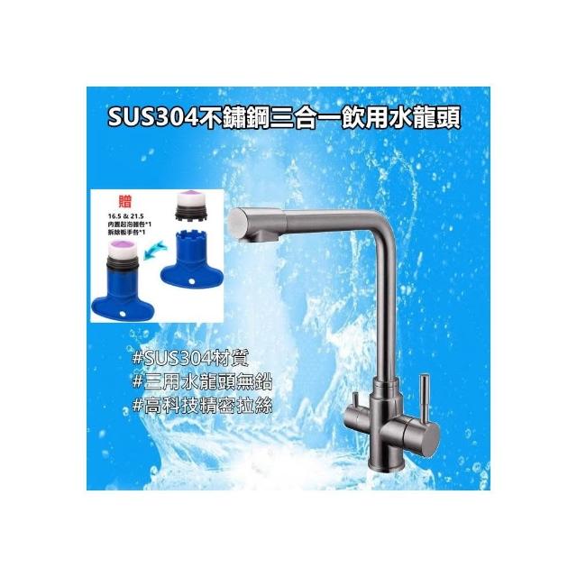 MIAO YING 淼瀅精品衛浴🇹🇼正304不鏽鋼立式三用水龍頭 流理臺龍頭 冷熱水+RO淨水 閥芯/進水管台灣製造 白鐵 無鉛