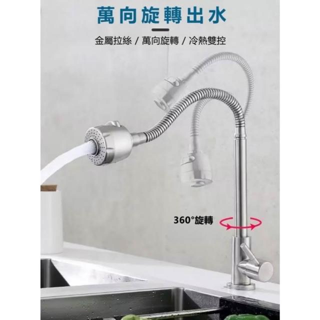 MIAO YING 淼瀅精品衛浴304不銹鋼無鉛龍頭 水龍頭 萬向活動水龍頭 冷熱混合水龍頭 萬向蛇管龍頭 360°可旋轉
