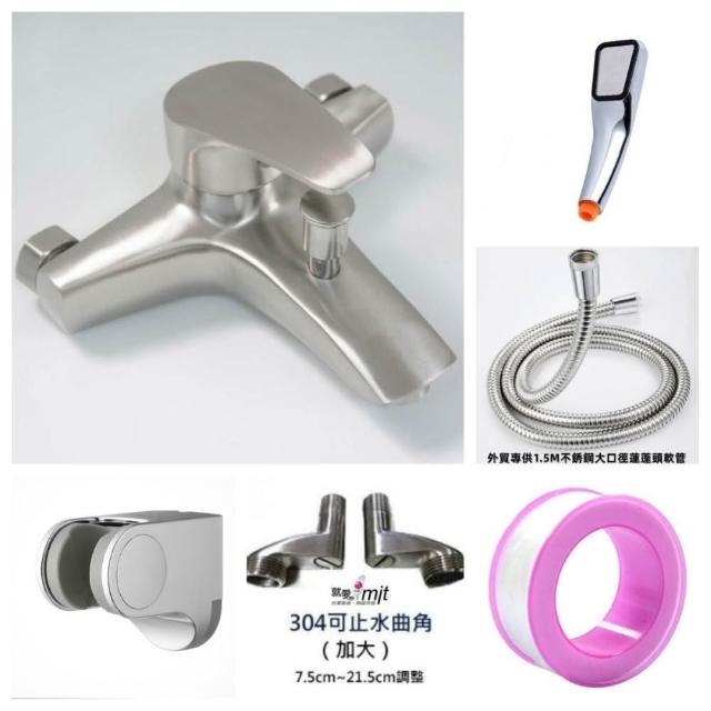MIAO YING 淼瀅精品衛浴304不銹鋼水龍頭 加寬手把浴室水龍頭 沐浴龍頭 不銹鋼浴缸浴室洗澡沐浴蓮蓬頭 此為新改版大流量淋浴水龍頭