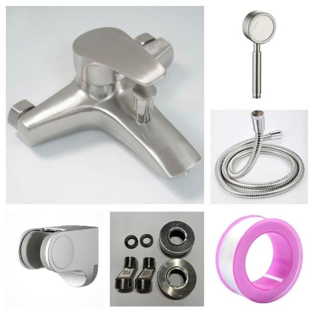 MIAO YING 淼瀅精品衛浴304不銹鋼水龍頭 加寬手把浴室水龍頭 沐浴龍頭 不銹鋼浴缸浴室洗澡沐浴蓮蓬頭 此為新改版大流量淋浴水龍頭