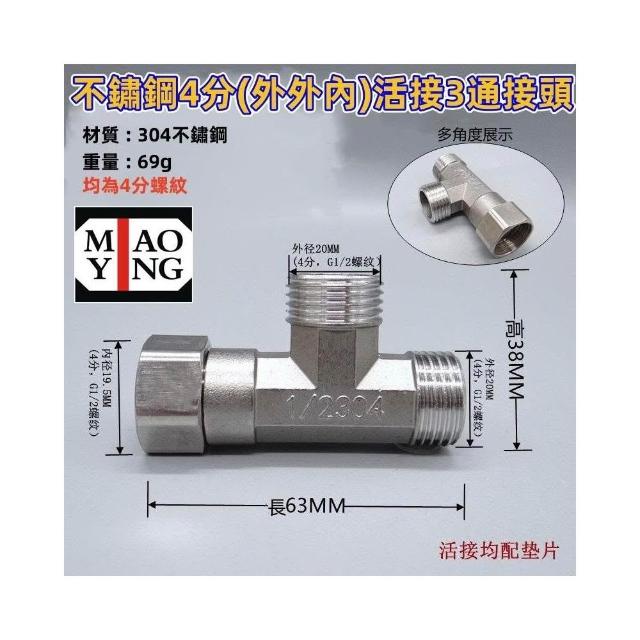 MIAO YING 淼瀅精品衛浴304不銹鋼活接3通 水管活動三通 水龍頭 三通 開關 接頭 廚房 沐浴 龍頭 水管 四分 4分