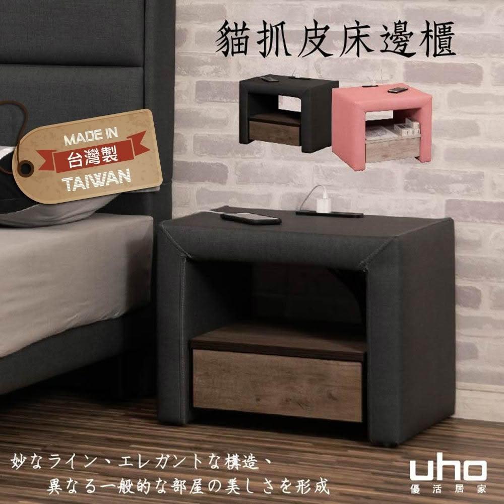 UHO台灣製 貓抓皮一抽 床邊櫃 床頭櫃 收納櫃 邊櫃(原版/USB版)