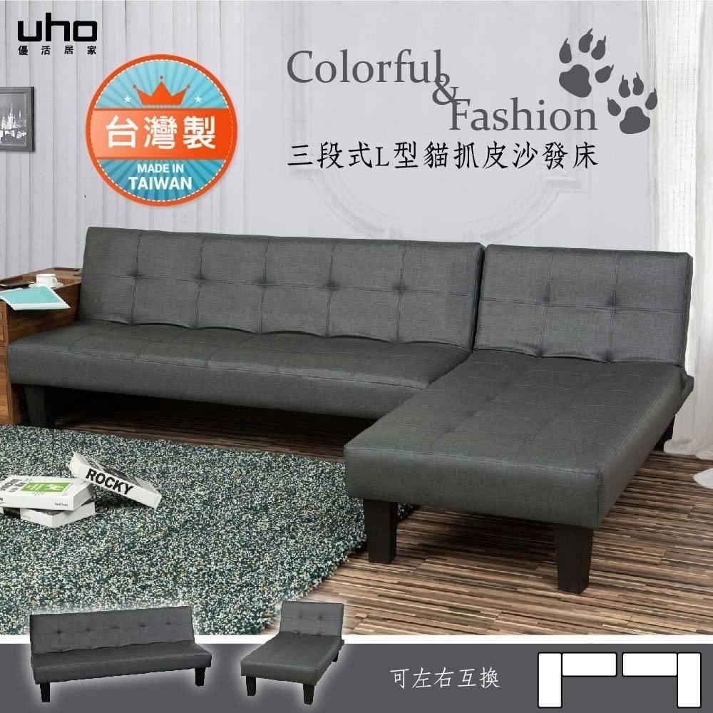UHO台灣製 貓抓皮L型沙發 沙發床/小空間 耐磨 多色可選 WUSFB-168+169