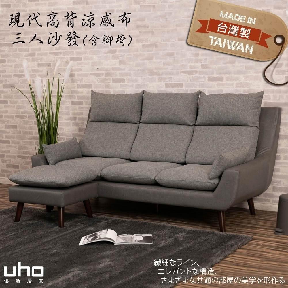 UHO台灣製 機能涼感布 布沙發 高背 三人沙發+腳椅 L型沙發(可拆售) WUSF-3-203+WUJY-203