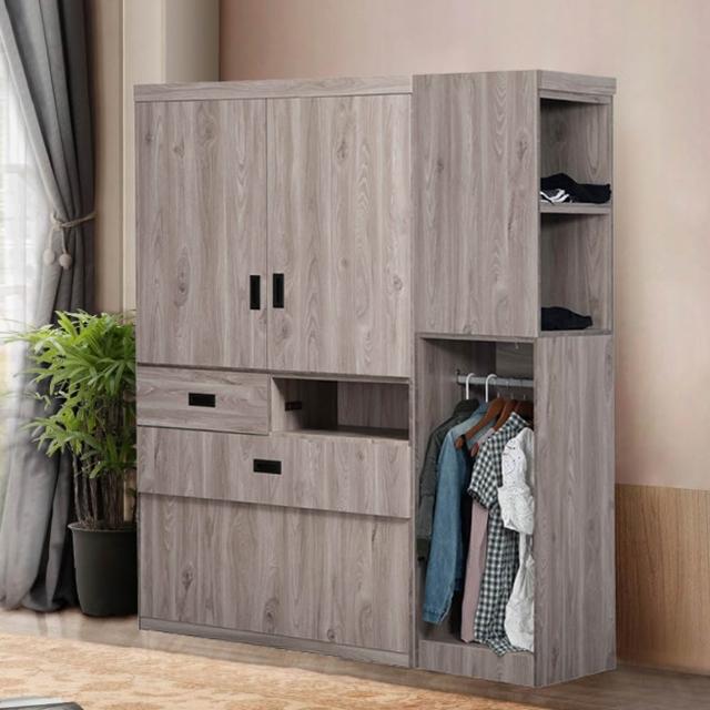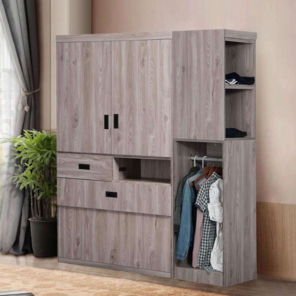 UHO台灣製 東野-灰橡色5尺床頭式衣櫃(附插座) 木心板 省空間 衣櫥 1.5尺開放式衣櫃