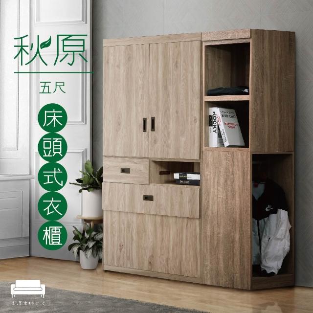 UHO台灣製 秋原5尺床頭式衣櫃 橡木紋色 梧桐色 木心板 多格收納 附插座 開放式衣櫃