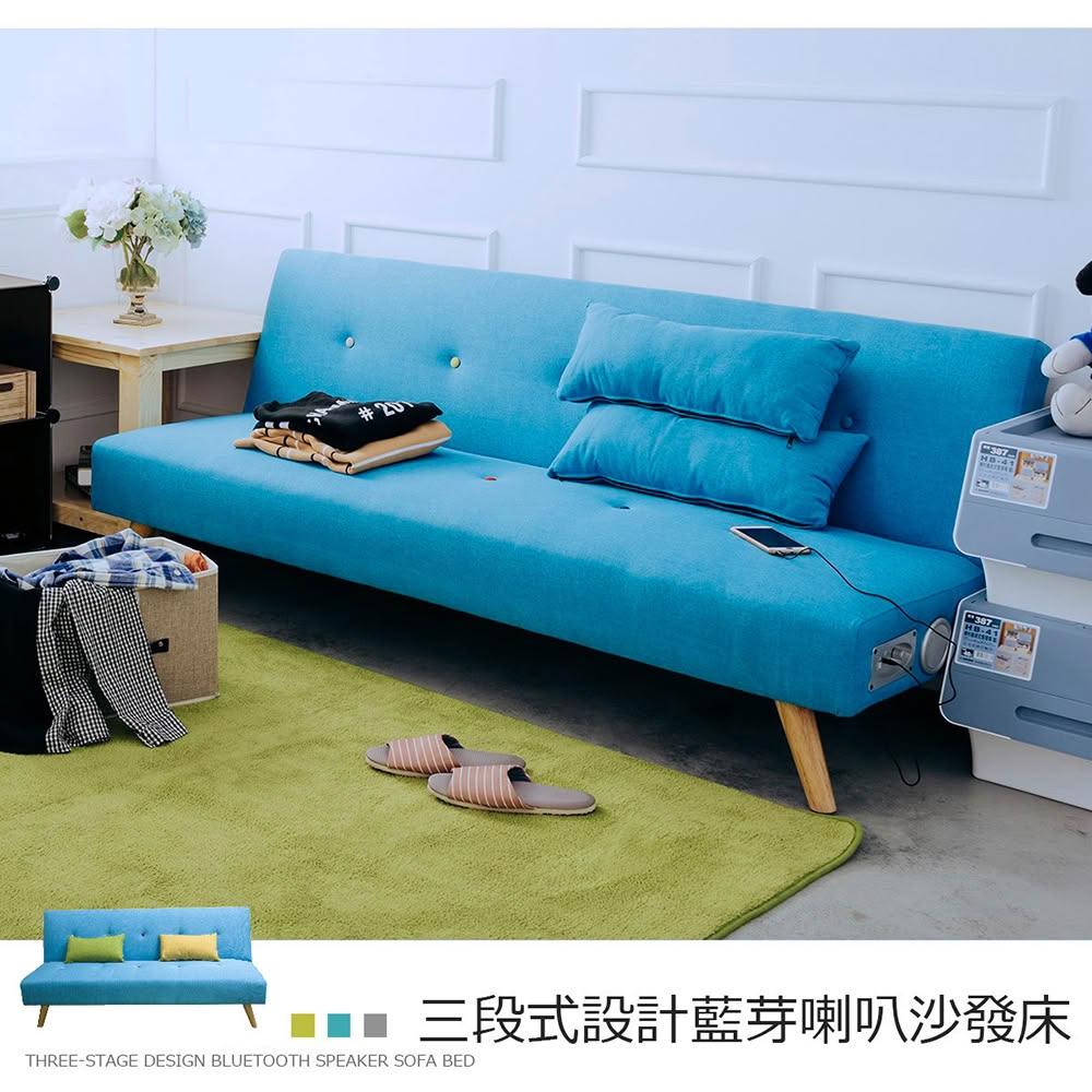 UHO藍芽沙發床/三段式/實木腳/附抱枕