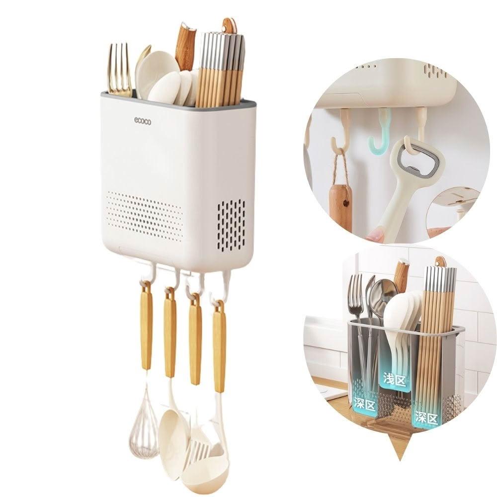 ecocoecoco 意可可 壁掛式筷子收納桶 筷子瀝水架 (白色)