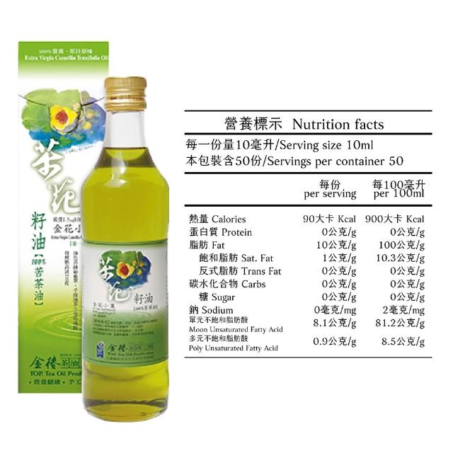 金椿茶油工坊金花小菓 苦茶花籽油 (500ml/瓶) (可生飲、酸價:0.41%)